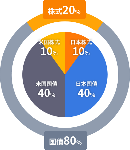 株式と債券を均等に配分。リスクを抑えつつ、中長期的な資産の成長をバランスよく目指します。