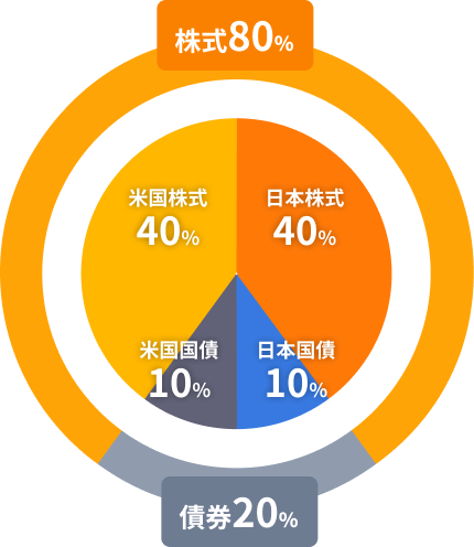 株式中心の積極的な運用。高いリターンを期待する一方で、短期的な価格変動を許容できる方に適しています。