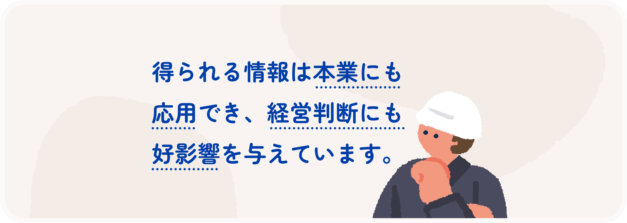得られる情報は本業にも応用でき、経営判断にも好影響を与えています。